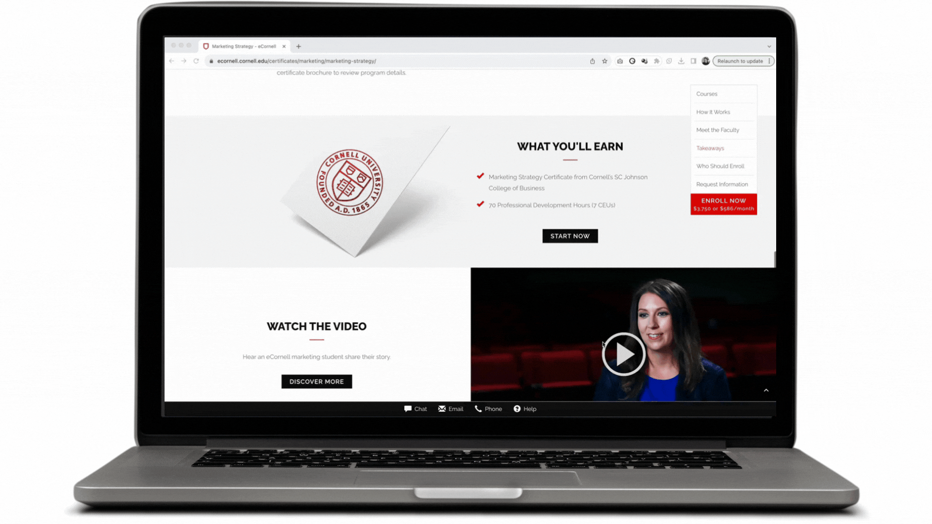 Designed dedicated web pages, print and tradeshow collateral for 250+ product launches. Most notably I developed a multiphase, multichannel promotional campaign to launch Cornell’s groundbreaking AI-powered certificate program. Planned and executed 30+ video assets which launched the campaign and served as the main pitch piece for media pickup.