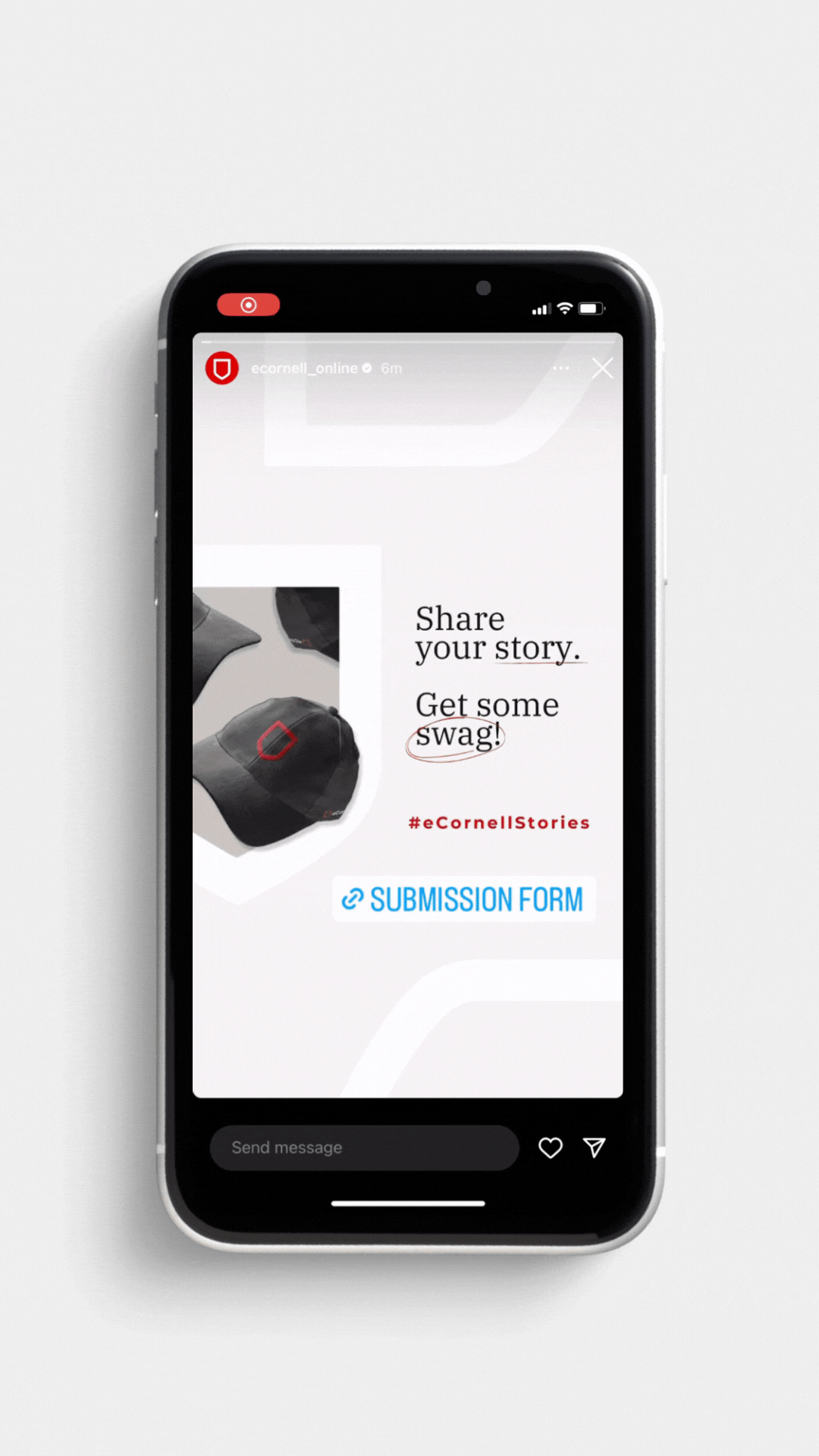 Students share on their own profiles, tagging the brand and #eCornellStories. Brand also reshares submissions.