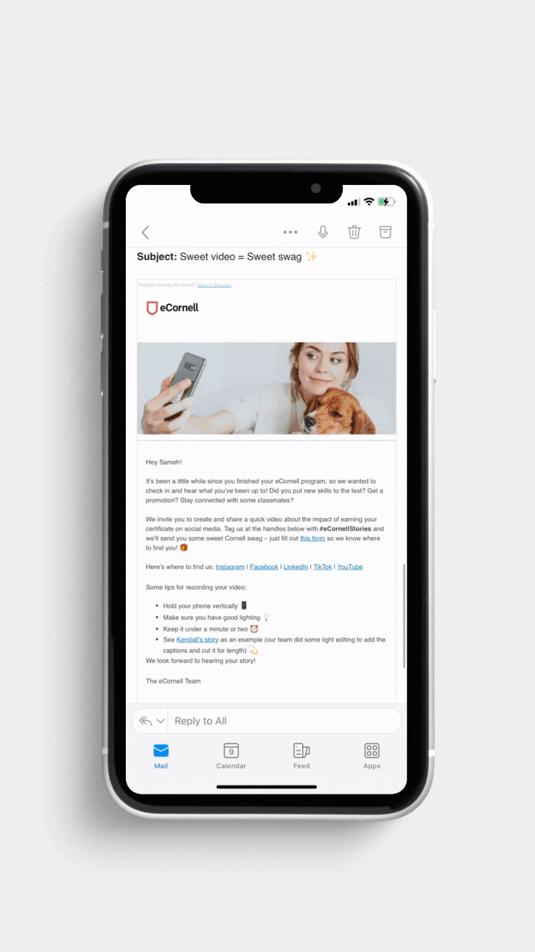Develop a multi-channel content campaign called #eCornellStories to develop the brand as well as capture and multiply the proven power of UGC.